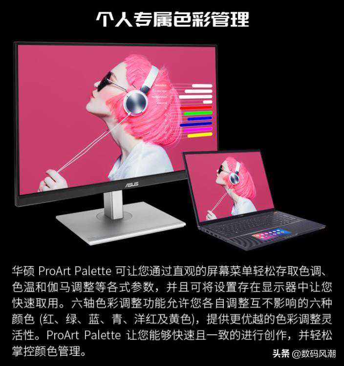 从参数上不难发现,相同价位的产品性能很难出挑,所以软件层面就成了加分项。为此华硕推出的ProArtPalette功能可以通过屏幕菜单直接存取色调、色温和伽马调整等各式参数,甚至后续还能从显示器中直接快速取用。这种快速调取的功能,非常适合固有颜色需求的用户,从体验上确实要更胜一筹。