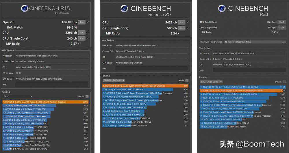 关于这颗R9-5900HX相关的跑分成绩如下,CinebenchR23的多核成绩可以达到13700+,这颗8核心的5900HX用大约70多瓦就能跑到这个成绩,个人感觉很优秀了,此时需要高喊AMDYES!