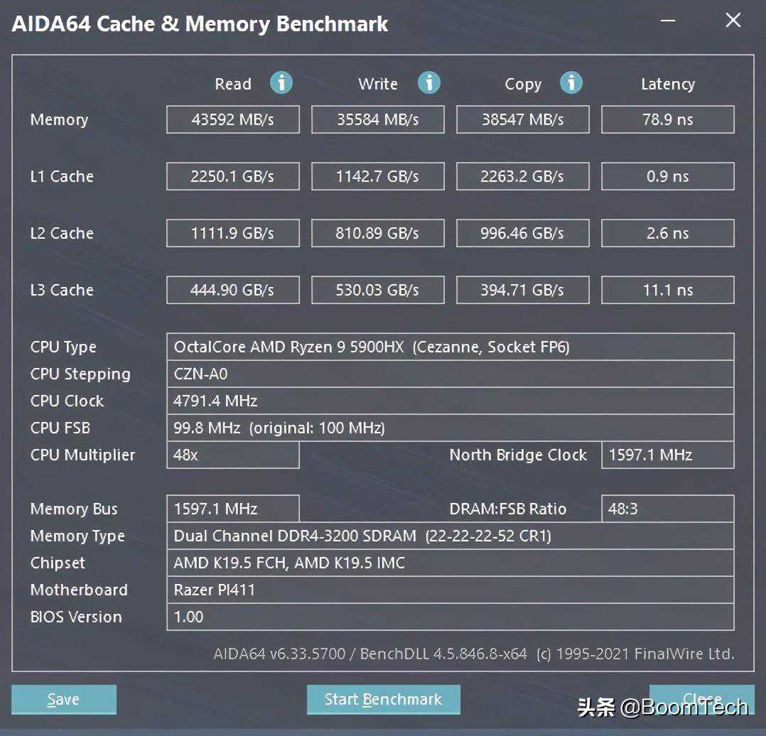 内存测试中,如今锐龙平台的内存延迟控制的已经算是不错了。不过比较遗憾的地方在于即便是R9+3080的配置标配只有16GB容量的内存,且内存是板载,不支持额外的扩容。