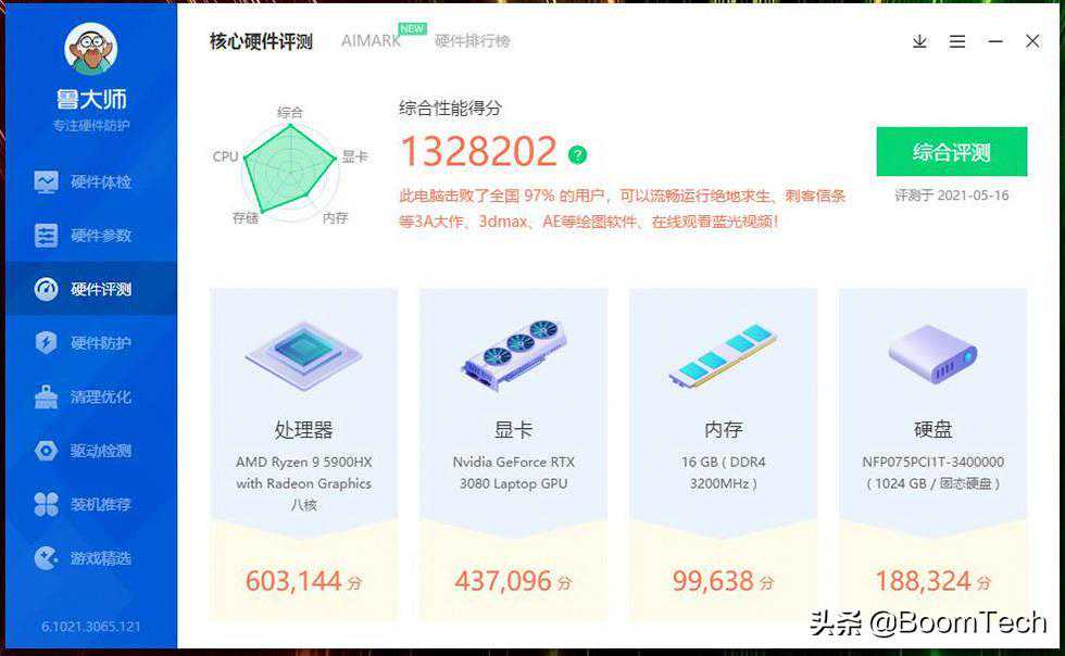 出色的成绩同样也体现在鲁大师跑分上,轻松突破130万,也成功击败了97%的用户(手动滑稽)。