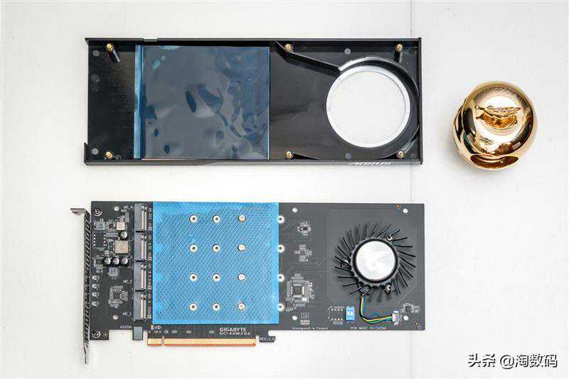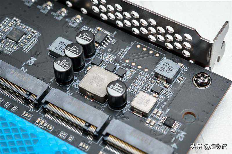 四颗的高性能SSD一起满载时候功耗还蛮可观的,所以这张扩展卡还做了专门的独立供电。
