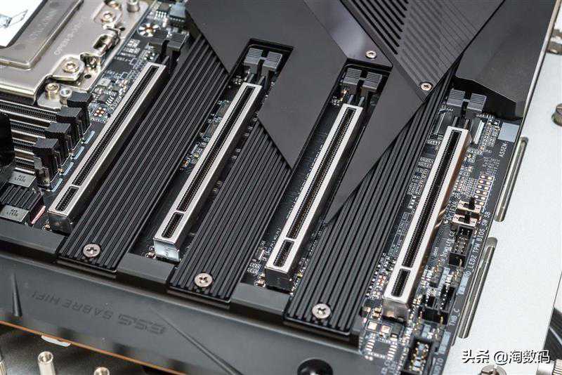 主板采用了不常见的XL-ATX版型,达成了4根显卡插槽+4根插槽的规格。