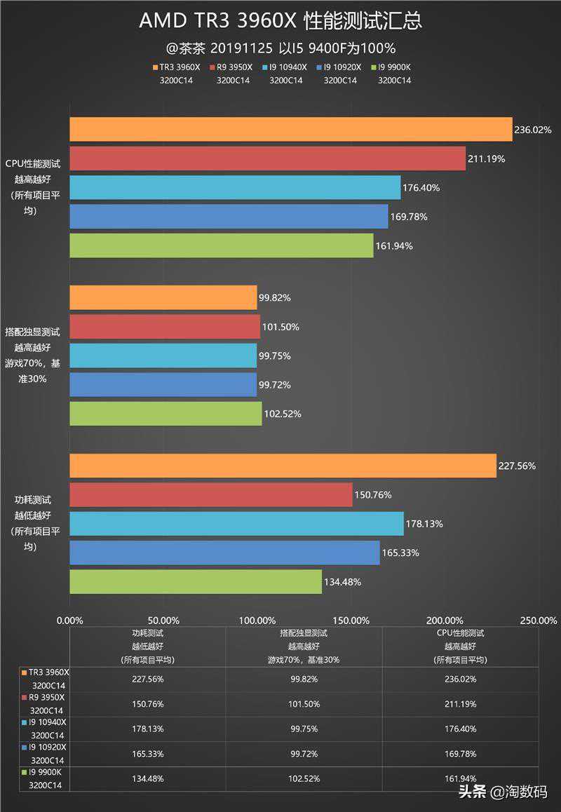 CPU综合统计来说,TR33960X是没有对手了,而且在日常应用中的表现也不差,短板已经补齐。