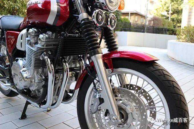 气冷式引擎反映出的古典外型在CB1100车系中,CB1100EX的特色就是采用了前后18吋的钢丝辐条轮框,而且固定在各部位的电镀零件也表现出了金属本身的质感及高级感。在这两个特色的搭配组合下,使得CB1100EX虽然是最新车款,但外型却是让人怀念的正宗古典风格。