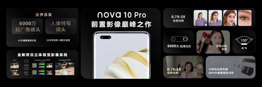 坚守华为影像三大支柱,打造华为前置影像巅峰之作华为nova10系列作为华为新一代前置影像巅峰之作,依靠华为影像强大的技术实力,在前置影像领域持续深耕探索,通过前置6000万超广角镜头和前置人像特写镜头带来的前置0.7X——5X超广变焦范围、前置QPD全像素精准对焦等多项业界突破性影像技术,将用户对前置影像的诸多构想变成现实,给用户带来惊喜愉悦的拍摄体验。让用户在影像社交时代,可以更加尽情创作高品质的作品,记录自己、表达个性、分享美好生活。