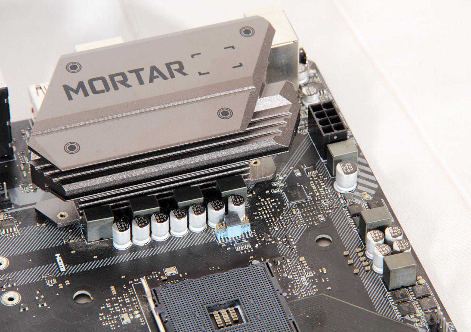 最具标志性的就是它的整体式MOS散热块,有点像整块的盔甲,又有点像MORTARlogo千层饼的既视感,散热褶皱能带来更高效的散热效率,其实在一块主板上发热效率最高的往往不是CPU和显卡,而是每一秒都在整流的CPU供电MOS管。纯数字的6相供电配上高品质铝壳全固态电容和铁氧体全封闭电感的组合,这也算主板供电上的轻奢组合了。