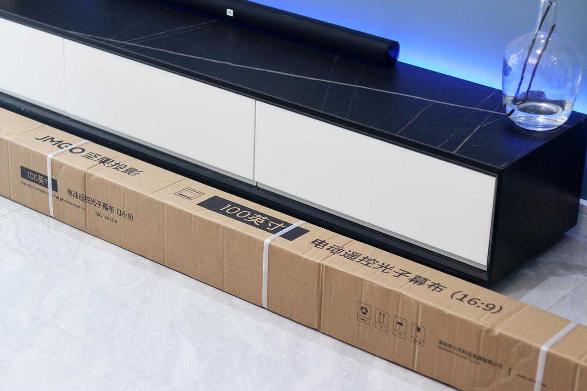 因为搭配坚果投影J10S用嘛,所以就选了坚果的光子幕布,原厂的肯定搭配起来更靠谱些。我发觉我也是胆大,极限的投射距离,我选了100英寸,安装好之后发现刚刚好,要是房间再小一点,都投不满全屏。