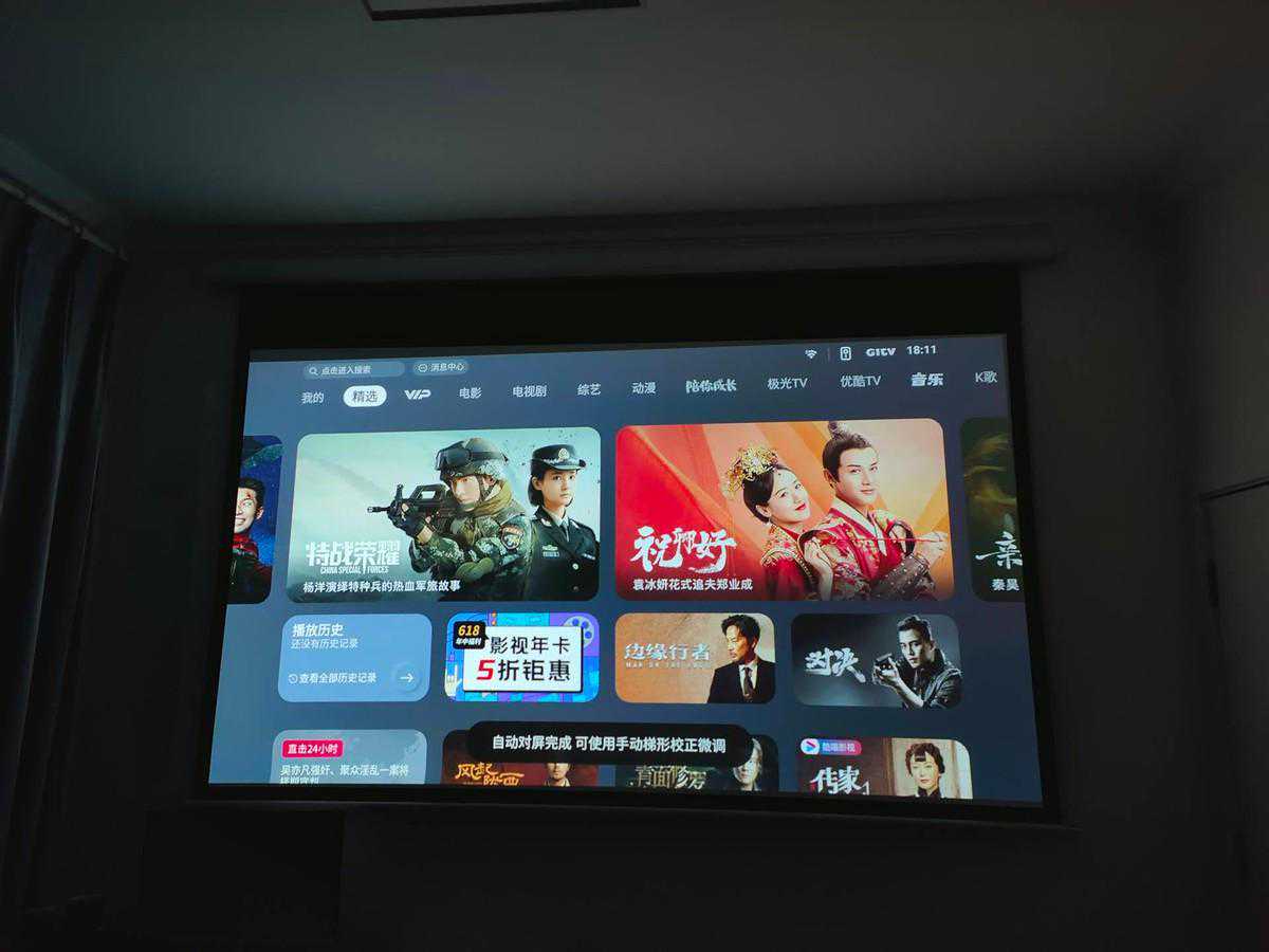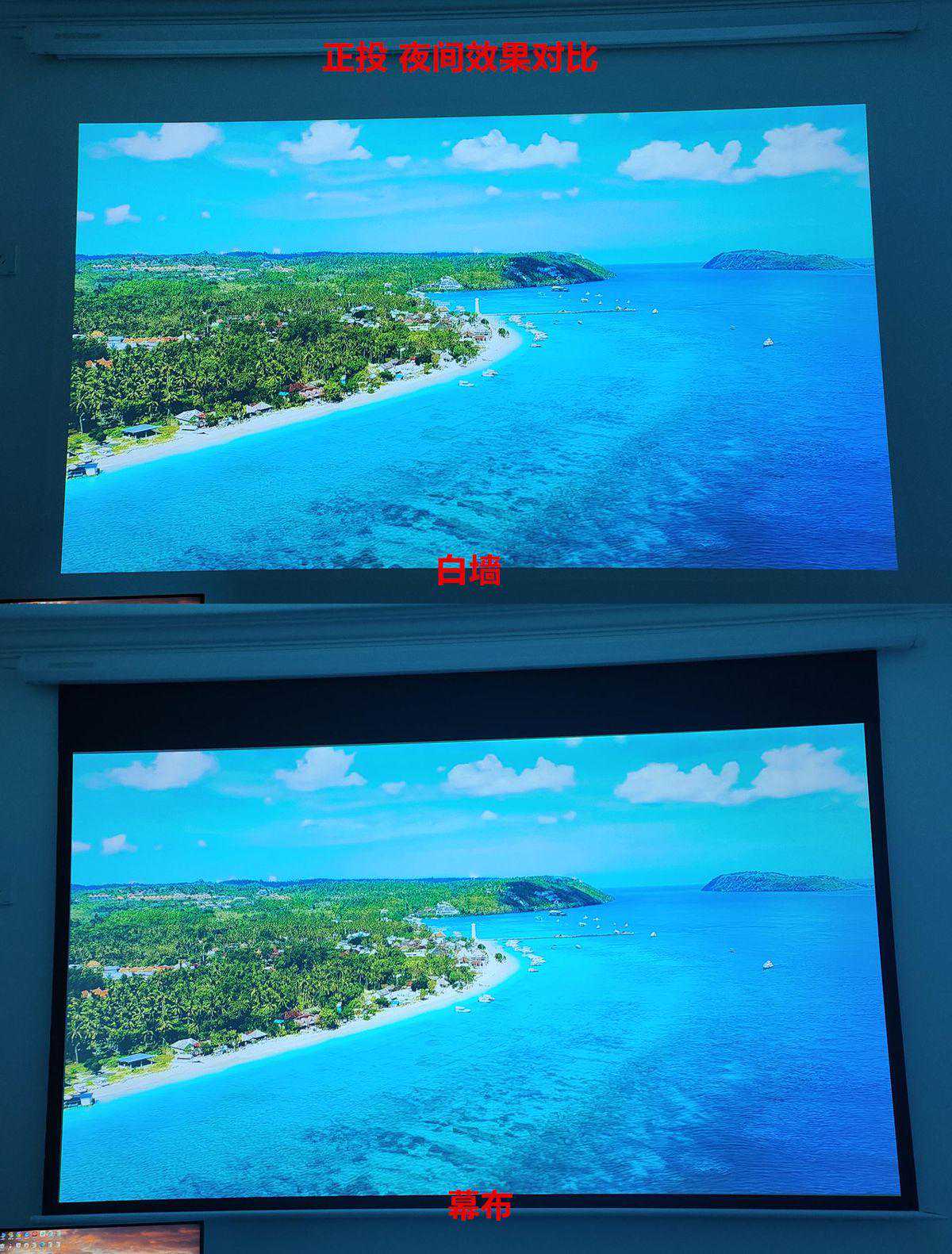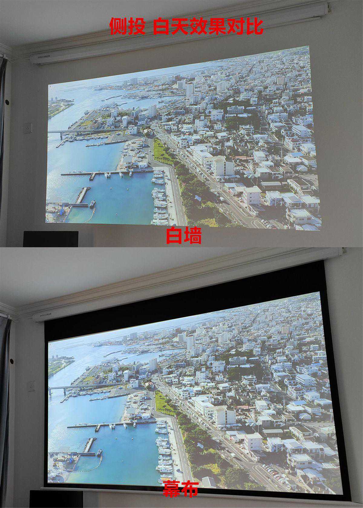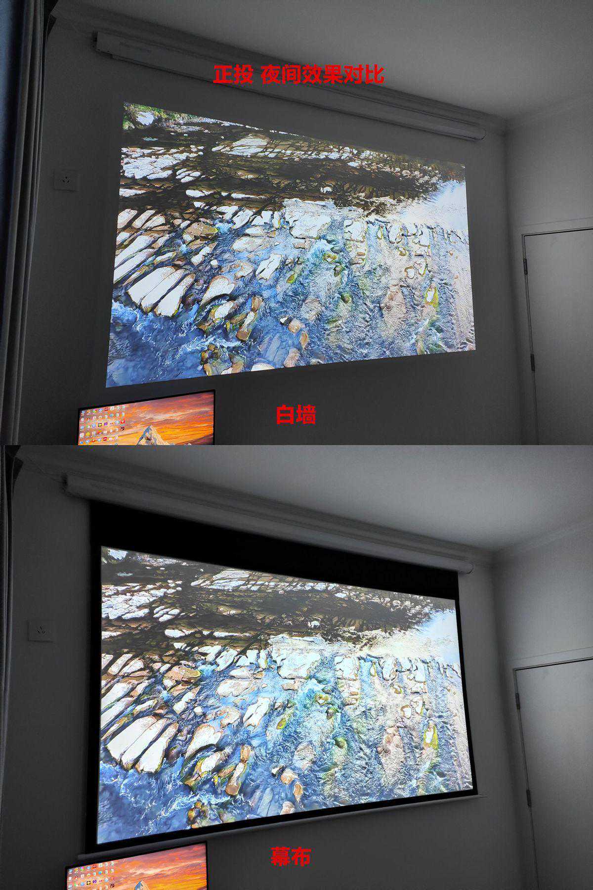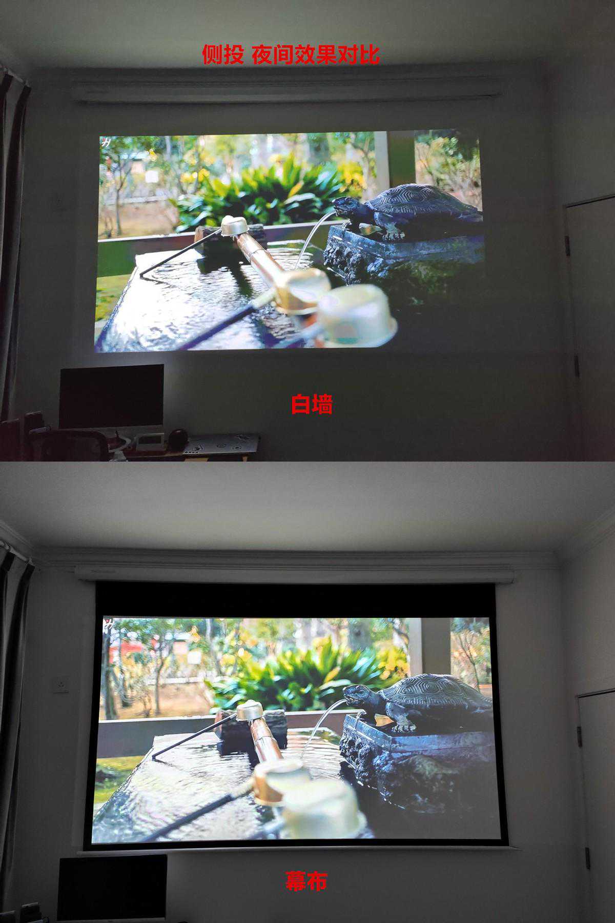 好了,既然已经安装好并且设置好投影了,我们就来看一看最终的效果,看相比于直接投在白墙上,提升到底大不大。正投和侧投我都有测试,可以多看一下对比图。