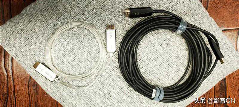 然而布好线后,我所使用的高价24AWG10米大牌2.0HDMI在投影和器材之间仍有一半的概率出现握手失败。自己一个人看还好,重启几遍全部设备就忍了,但在经历了几次家访,屡次被五湖四海的朋友疑惑的眼神所折磨后,还是痛定思痛重新布线。我在好友们的建议下买了几条菲伯尔光纤线,比如图中作为对比的8mUltraPro2和埋在墙里的10米King-A。此后很少会出现握手失败的情况,相比高价大牌线,光纤带来的音画也变得更通透。自此,我也正式加入了FIBBR忠实粉丝行列。