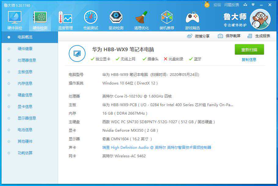 性能全面提升,轻薄同样可以“强悍”全新的荣耀MagicBookPro2020搭载第十代英特尔酷睿i7-10510U/酷睿i5-10210U处理器,辅以16GB双通道DDR42666MHz内存和512GB高性能PCIeNVMeSSD高速固态硬盘。均配备NVIDIAGeForceMX350独立显卡,整体性能表现提升很多。(笔者体验的是i5-10210U处理器版本)