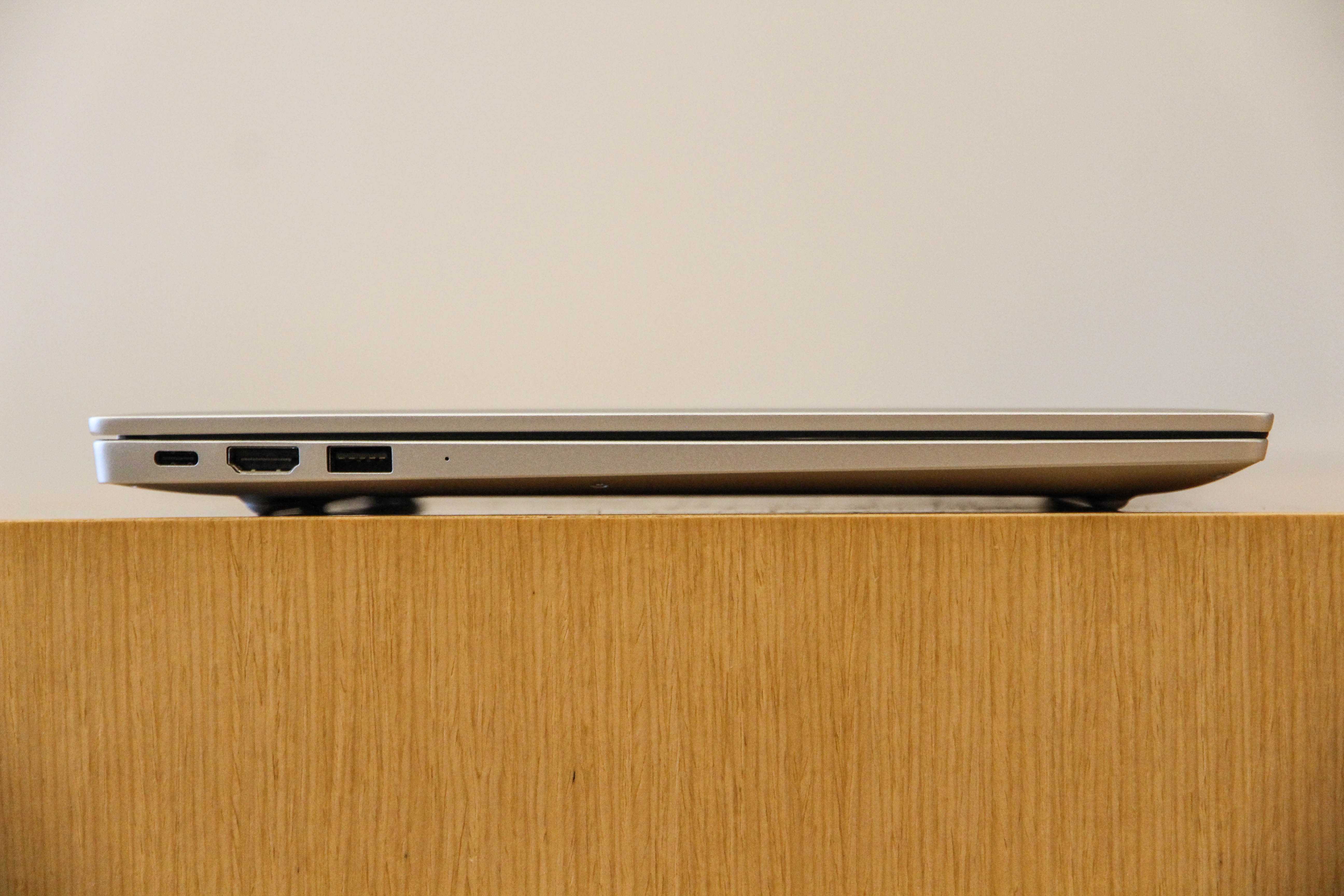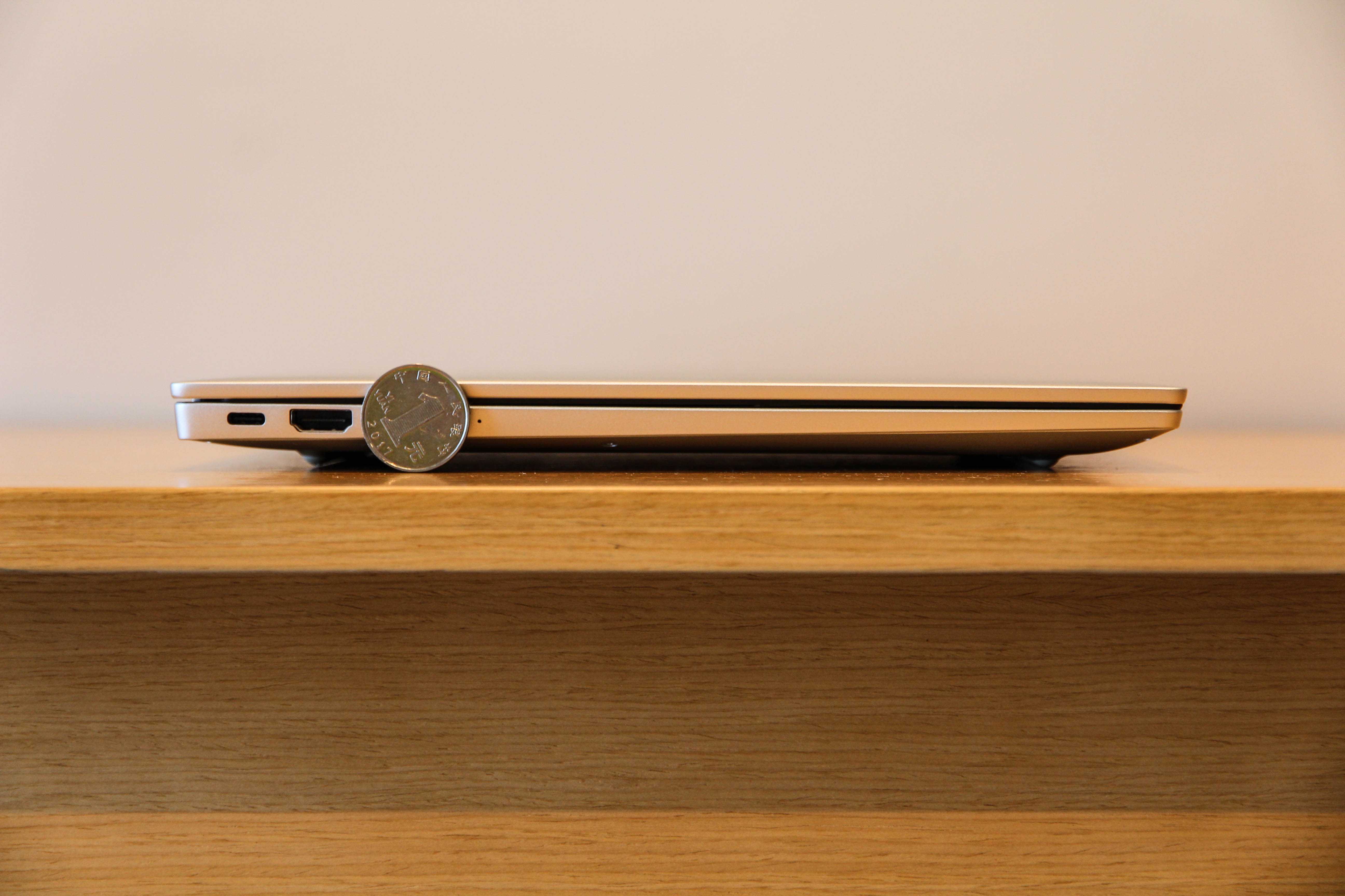 一个小细节是荣耀MagicBookPro2020的防滑减震胶垫比较高,这让机身D面与桌面有了较大的缝隙空间,在一定程度上又是为了加强散热效果所做的小心思。接口方面除了Type-C电源接口外,拥有三个USB接口、一个HDMI接口、一个3.5mm耳机接口。