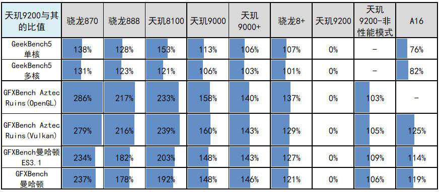 经过厂商连续几代的疯狂提升,现在天玑9200的GPU性能,已经是骁龙870的2.5倍,骁龙888/天玑8100的2倍了,涨幅多少有点魔幻了。