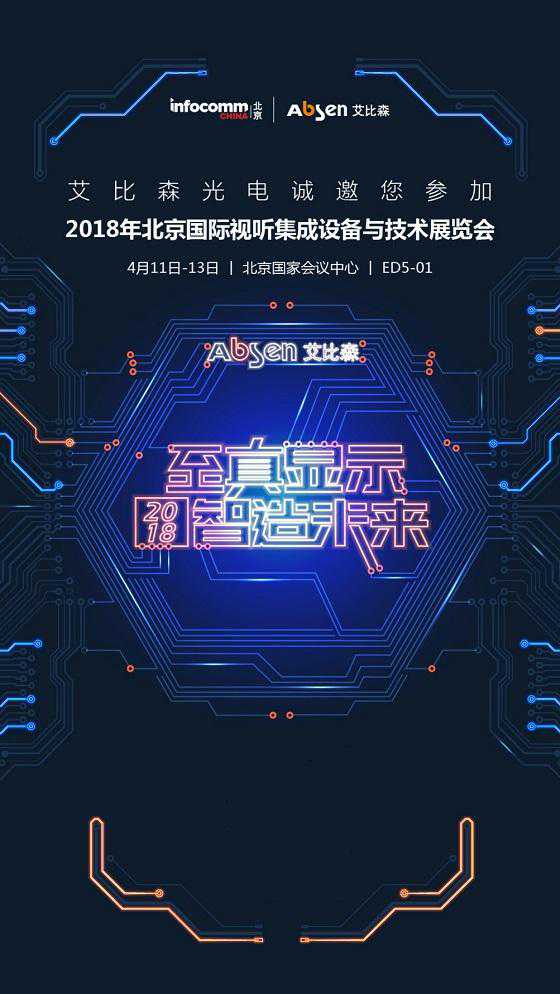 4月11日至13日,2018InfoCommChina将在北京国际会议中心隆重举行。艾比森将携超8k小间距、商显领域明星产品A2715、行业革新产品等在E展馆D5-01展位以“至真显示智造未来”的主题精彩亮相,并现场带来艾比森专显、商显应用解决方案和炫酷互动体验。