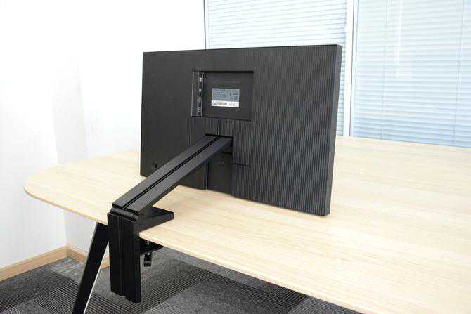 与我们常见的显示器不同,三星SpaceMonitor在支架上采用的是独立钳夹式支架,与显示器通过4颗螺钉固定形成一个整体,再通过支架上的钳夹,与桌子的一边牢固固定。固定显示器的这一边可以贴墙,也可以不贴墙,其稳固程度无需担心。