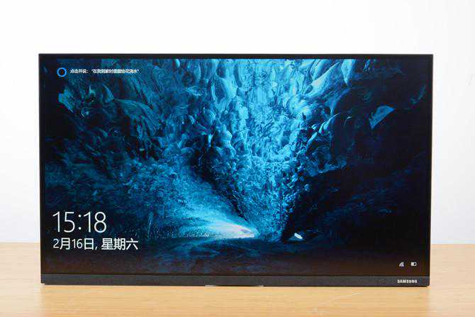 下边框略宽,喷砂质感的边框,并在左下角有SAMSUNG的标识。整个显示器看上去像一个边角方正的大平板。