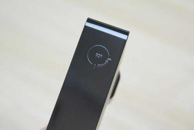在组装显示器的时候,我们看到这款显示器的附件中,电源适配器和HDMI线缆也做了特别的设计,电源适配器的体积已经非常小巧,在机身上可以看到能实现90度旋转,也就是双相的插头是可以旋转角度的,这样的好处就是面对不同的插排可以更加灵活。