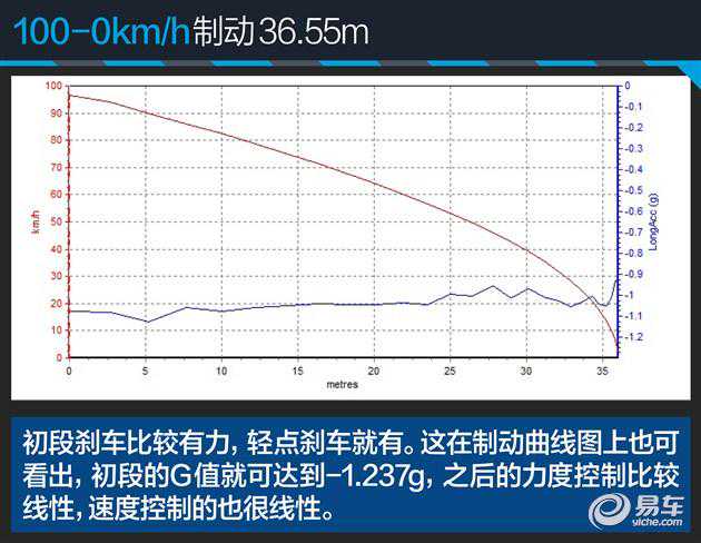 1挡全力加速时,C350eL的发动机和电动机协同工作,最大可达到0.711g的加速G值,这个数值相比C300L略大一些,并可维持0.6秒左右,但并不会有过于鲜明的区别,毕竟电动机的作用更多的还是节油。换挡过程并不迅速,还是一贯的强调舒适性,换挡后G值也降至0.3g左右。最终C350eL的加速时间为6.41秒,奔驰并未给出C350eL的官方成绩,但对比C300L的6.6秒,还是有一定提示的。