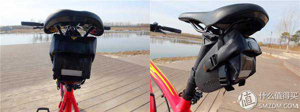 之所以选择这款包我是这么考虑的,首先自行车没有挡泥板,所以坐垫包脏的概率非常非常大,那么一定得选一个防水的,到不是因为雨天防水等等原因,主要是因为防水的材料一般比较好擦洗,容易保持清洁度。而且这款包采用快卡技术也比较喜欢,一方面这样的防水效果要比防水拉链更好,而且时间久了基本也不会影响防水性。还有就是比较硬的材质看上去确实好看。选择小号一方面是觉得0.6L足够了,我都不知道这里面应该装什么,一方面天猫好像只有小号的了。