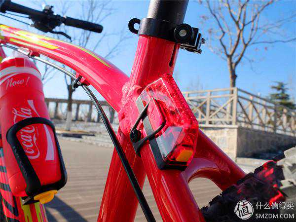 第二张图是车尾灯,感觉浑然天成啊,跟红色车配在一起太和谐了,因为车架以及车座包的原因,这个车尾灯只能放在这里了,但整体还好不影响后视,如果你也选择这样安装的话,一定要放在左侧,这样骑行的时候后面的人看的比较清楚。还有就是这里面的所有LED都是斜角超上的,设计也是比较独特的。