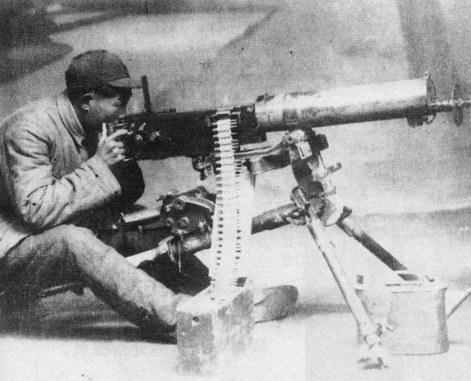 睢宁战役中的第四师指战员使用哈奇开斯重机枪