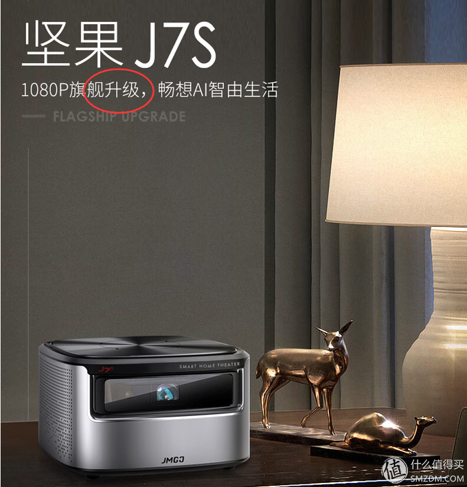 在上一代产品坚果J7当中,我们看到了其官方宣传页上直接注明了0.47DMD芯片,表明它确实采用了高规格的DMD,原生物理分辨率的确可以达到1080P。