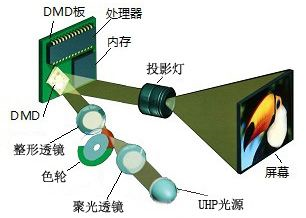 什么是DLP背投,先来看百度百科上的解释“DLP是“DigitalLightProcession”的缩写,即为数字光处理,也就是说这种技术要先把影像信号经过数字处理,然后再把光投影出来。它是基于TI(美国德州仪器)公司开发的数字微镜元件——DMD(DigitalMicromirrorDevice)来完成可视数字信息显示的技术。具体来说,就是DLP投影技术应用了数字微镜晶片(DMD)来作为主要关键处理元件以实现数字光学处理过程。其原理是将通过UHP灯泡发射出的冷光源通过冷凝透镜,通过Rod将光均匀化,经过处理后的光通过一个色轮(ColorWheel),将光分成RGB三色(或者RGBW等更多色),再将色彩由透镜投射在DMD芯片上,最后反射经过投影镜头在投影屏幕上成像,再同生产厂家进行DLP的开发。”