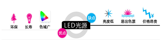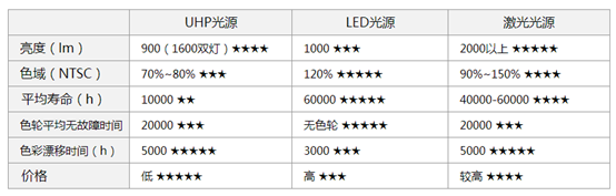 可以看到,激光的亮度和色域是最高的,价格也最高。LED光源的各方面都比较均衡。