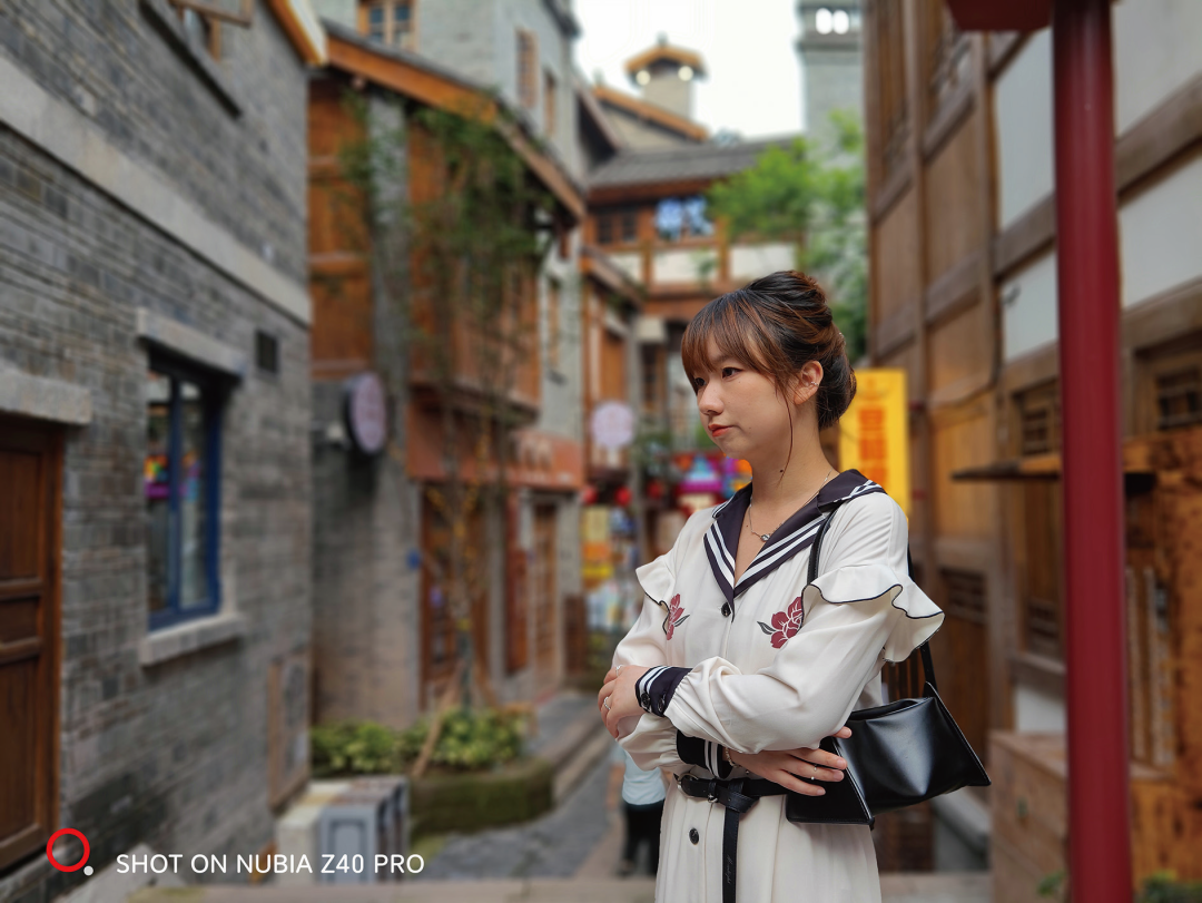无论是主摄直拍带来的光学景深效果还是开启人像模式后的算法虚化处理,努比亚Z40Pro都是第一梯队。从样片来看,努比亚Z40Pro在模特主体的修饰和焦外背景的处理上都相当干净和自然,照片给人一种温润舒适的观感。