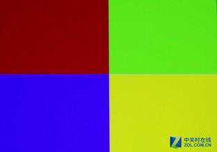 从以上三组实拍图中我们可以看出,开机后,酷乐视R4S在画面的细节展现上还是有可取之处的,比如人物肤质、水花以及多色墙面的纹理等等。这款机型选用的是RGGB四通道设计,一般的投影机只有RGB三色通道,而四色通道的设计能够让画面中的效果看上去更加精致,对观看来说更加适中。接下来是四色图的对比效果,这张图的挑战更为严峻苛刻。