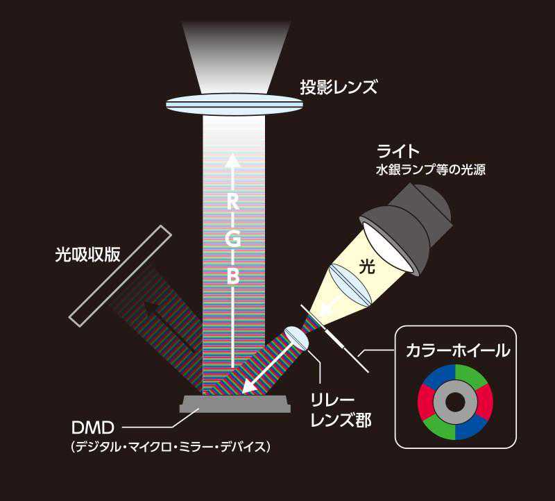 首先要知道我们能够在投影中看到的五颜六色的画面都是基于三基色而形成的,个人电脑和电视上经常使用的“RGB”一词指的是R(红色)、G(绿色)和B(蓝色)这三种颜色。三种颜色的光结合起来形成一种颜色。当“红”、“绿”、“蓝”三种颜色以相同的光强相互重叠时,纯白光变为“白光”。所以投影仪创建彩色图像的基础都是基于此。