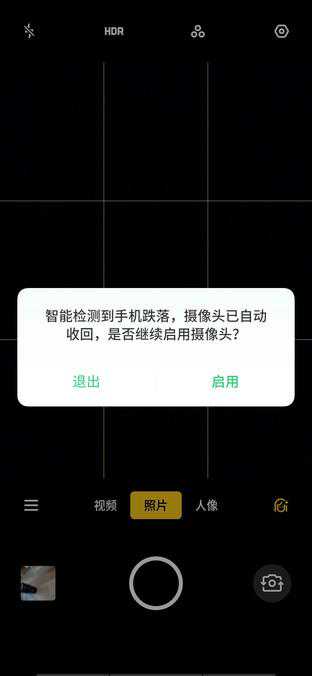 这里我们抛起realmeX,可以发现手机自动触发了防护机制,回弹了摄像头。