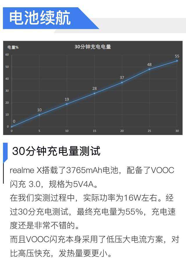 就整体续航成绩来看,realmeX足以承担起日常的使用需求,而且VOOC闪充3.0迅速的充电速度在用户碎片化充电体验中能带来更长的使用时间。在充电体验方面,在这个价位段,realmeX还是非常的超值的。