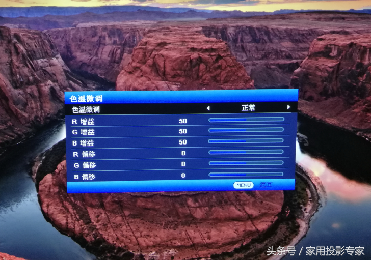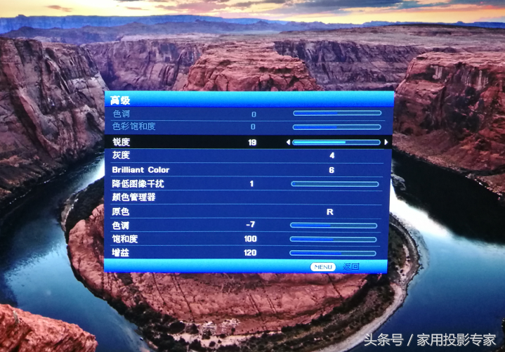 提到画质,DH765Z-UST确实给我很大的惊喜。双色轮的采用让其色彩表现非常惊艳,尤其是还配合HSG色彩管理系统能够对色彩进行非常细致的调节。比如不仅可以对红绿蓝三原色,还可以对青洋、紫、以及黄色进行独立的色调、色彩饱和度以及增益调整。
