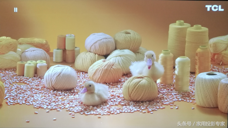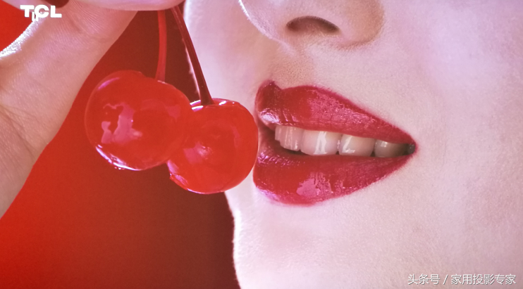 我为DH765Z-UST连接上OPPOUDP-2034K蓝光播放机,播放了几段4K演示片段和几部全高清蓝光电影。DH765Z-UST的投影画面具有偏向日系投影机那种清淡的色彩风格,不过却富有层次感,这种出色的色彩表现在超短焦投影机非常少见,尤其是红色和蓝色的表现,比如测试画面中美女手中的红樱桃与其红色口红,就能看出不同的红。