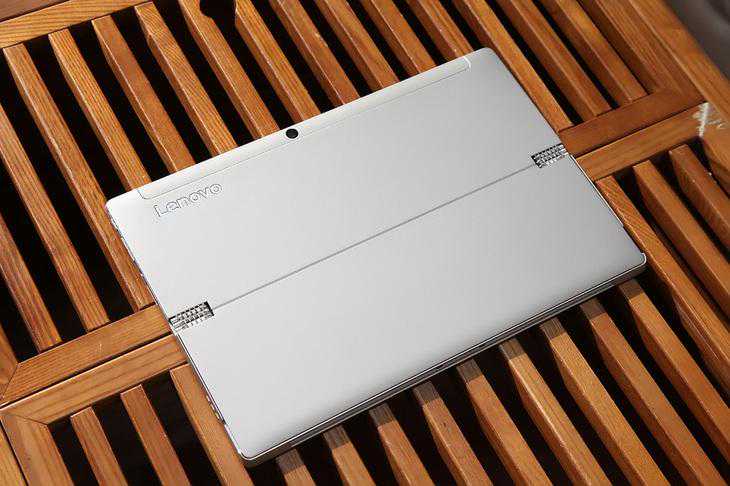 联想Miix520主机背面精选铂金喷漆处理的镁铝合金材质,共有闪电银、星际灰两种配色可选。左上角的“Lenovo”标志以及从中间将联想Miix520主机背面一分为二的转轴部分,向大家展示着来自大牌联想的高品质操守。