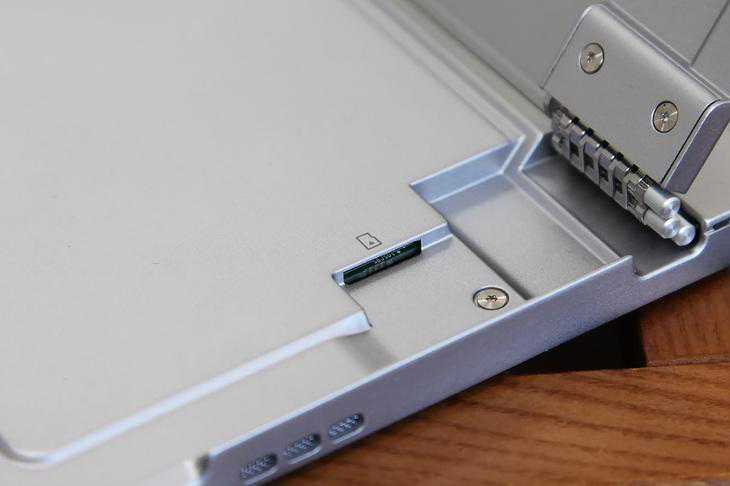 隐藏在背部转轴支架下方的MicroSD卡插槽,除了能够扩大Miix520的存储空间,在一定程度上能够替代一个USB接口的作用。