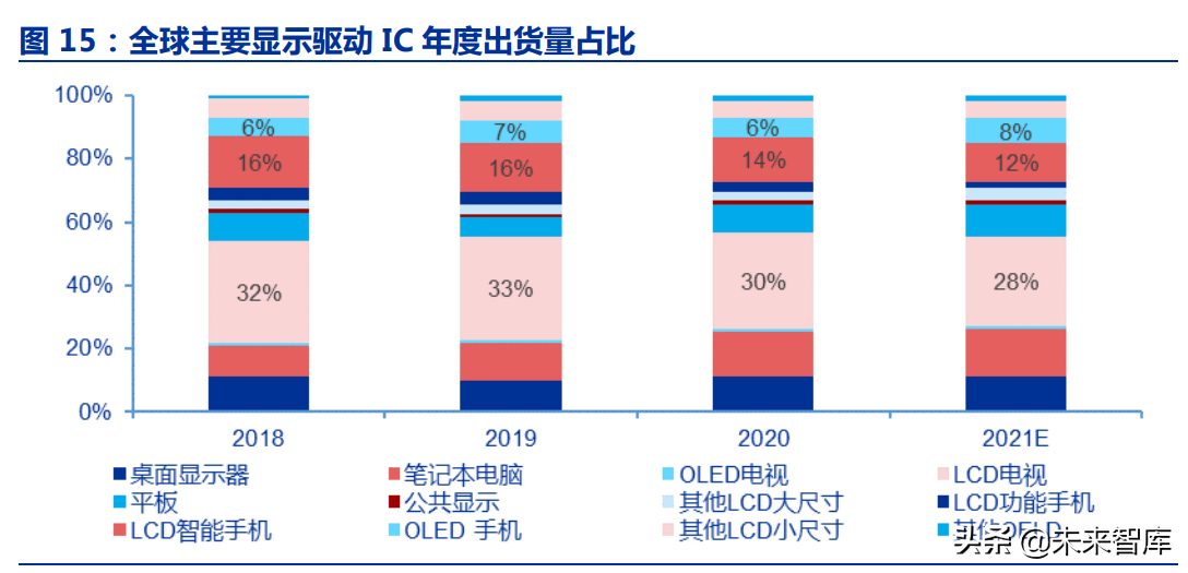 1.显示驱动芯片市场概况显示面板是手机、电视、平板电脑、笔记本电脑、安防监控设备、车载显示屏等设备必不可少的组成部件。