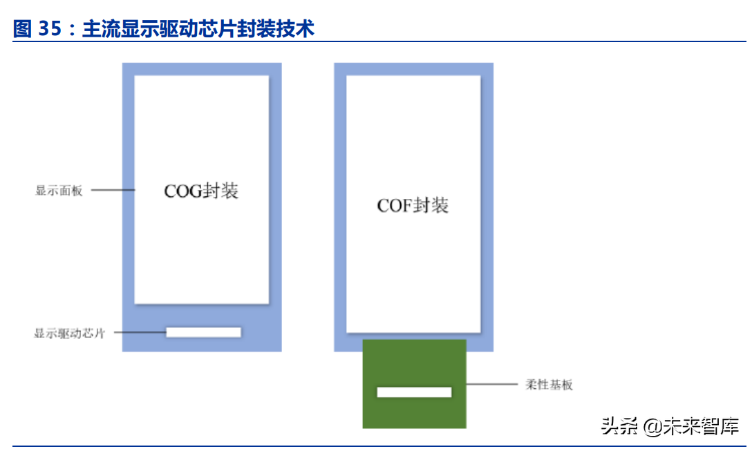 DDIC,即面板显示驱动芯片,是显示面板的主要控制元件之一。LCD驱动芯片为LCD显示屏中的灯珠提供稳定的电压或电流驱动信号,从而控制灯珠的光线强度和色彩,并在液晶片板上变化出不同深浅的颜色组合,进而保证显示画面的均匀性和稳定性。而OLED驱动芯片主要通过向OLED单元背后的薄膜晶体管发送指令的方式,实现对OLED发光单元的开关控制。