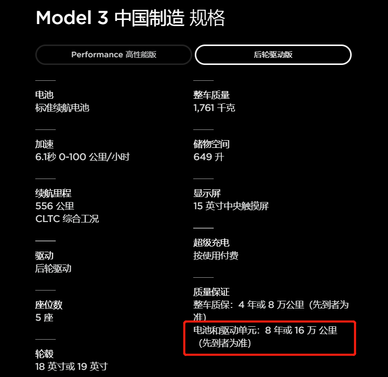 除了这些不容易被看到的电池安全技术之外,bZ4X还针对三电系统给出了10年或20万公里的超长质保,相当于给用户吃了一颗定心丸。作为对比,特斯拉Model3电池包的最长质保期仅为8年或19.2万公里,而且还只是高性能版独享,入门版车型的电池质保仅为8年或16万公里。