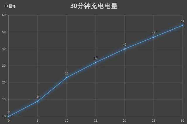 从上图可以看出,充电前15分钟充电曲线十分陡峭,官方实验室数据为15分钟充入36%,并且支持边充边玩游戏,足够应对日常生活中电量需求迫切的场景。