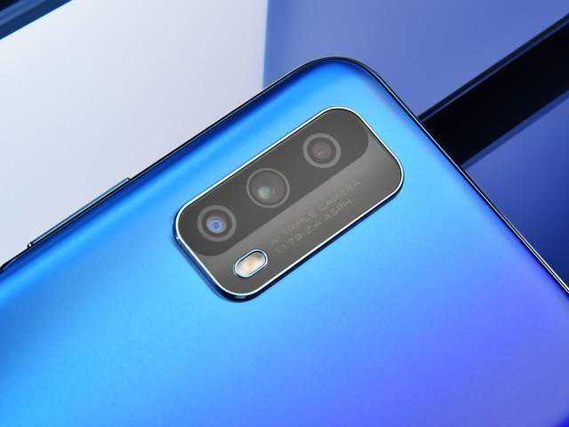 首先是配色方面,这款拥有海蔚蓝、锐酷黑和水漾白三种配色,我们本次拿到的是海蔚蓝,在后背色彩搭配上采用的是左右渐变色的设计,手机在光线变换下能够展现出蓝色由浅到深的明暗变化。机身后背还采用磨砂工艺,手感舒适,不容易沾染指纹。