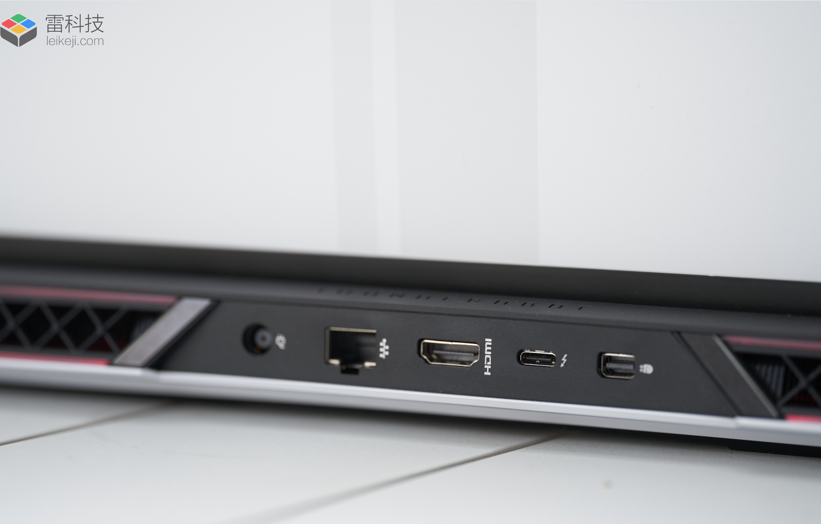 至于接口方面,雷神ZERO2023911把大部分接口都放在了机身背部和右侧,机身“屁股”方面的接口有DC圆口电源、RJ45网线、、雷电4、,后三个接口均支持外接4K高刷的屏幕使用。