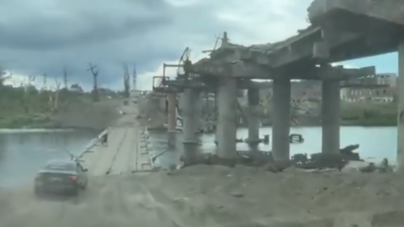 俄军在攻占的乌克兰共和国北顿涅茨克和利西昌斯克之间架设了一座浮桥,以取代被摧毁的桥梁。