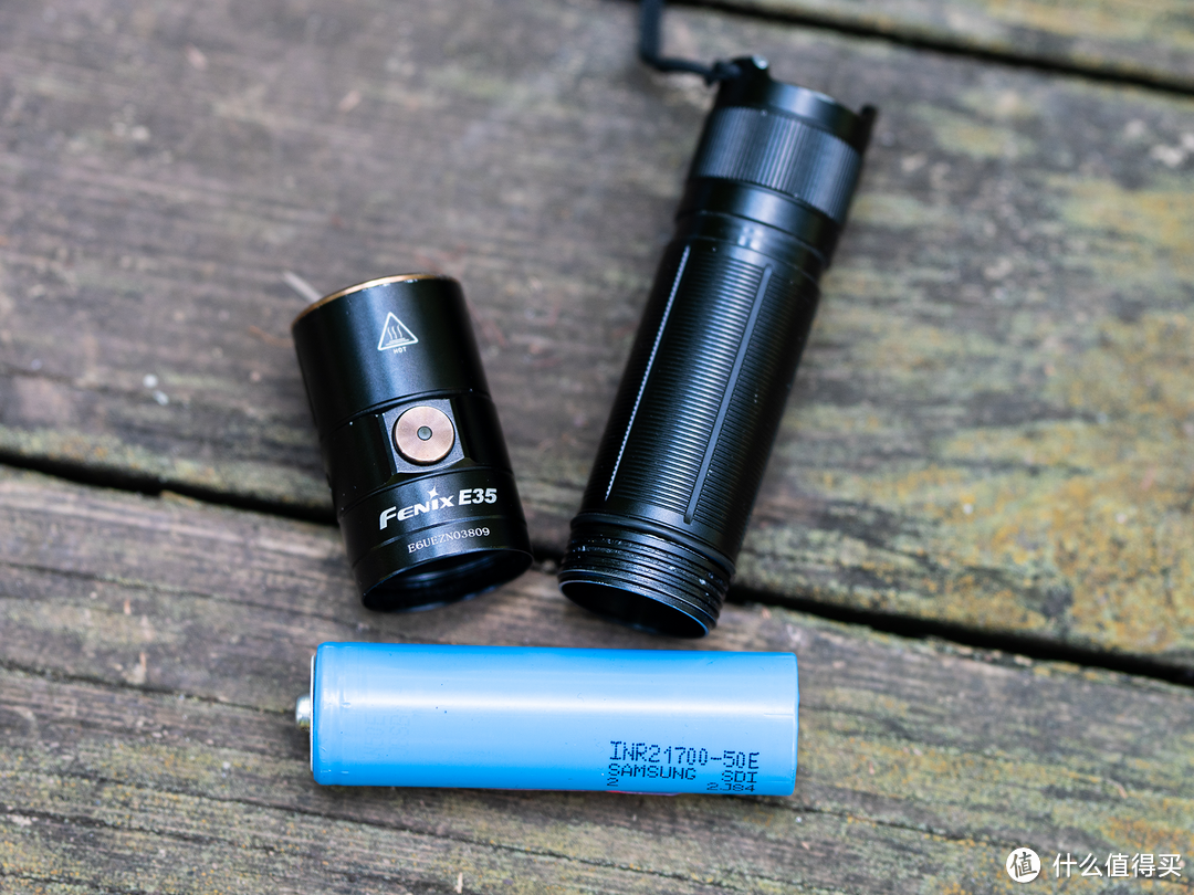 E35使用一节21700锂电池,注意只支持尖头21700电池,如果手上没有尖头电池也可以用平头电池+小磁铁替代。E35附送了一颗5000mAH的锂电池,电池上有个Type-C口可以直接用数据线进行充电,但仍然需要把电池拆下来充电。称了一下含电池净重约135克,只比18650小直筒重了约10克,重量控制得相当好,使得3000流明的手电也有一定便携性,要知道之前介绍的2000流明的海星Z2都有200多克重。重量和体型是靠控制筒身材料和厚度实现的,这只筒子看起来非常薄,不过摔了几次没有出现明显的凹痕和变形: