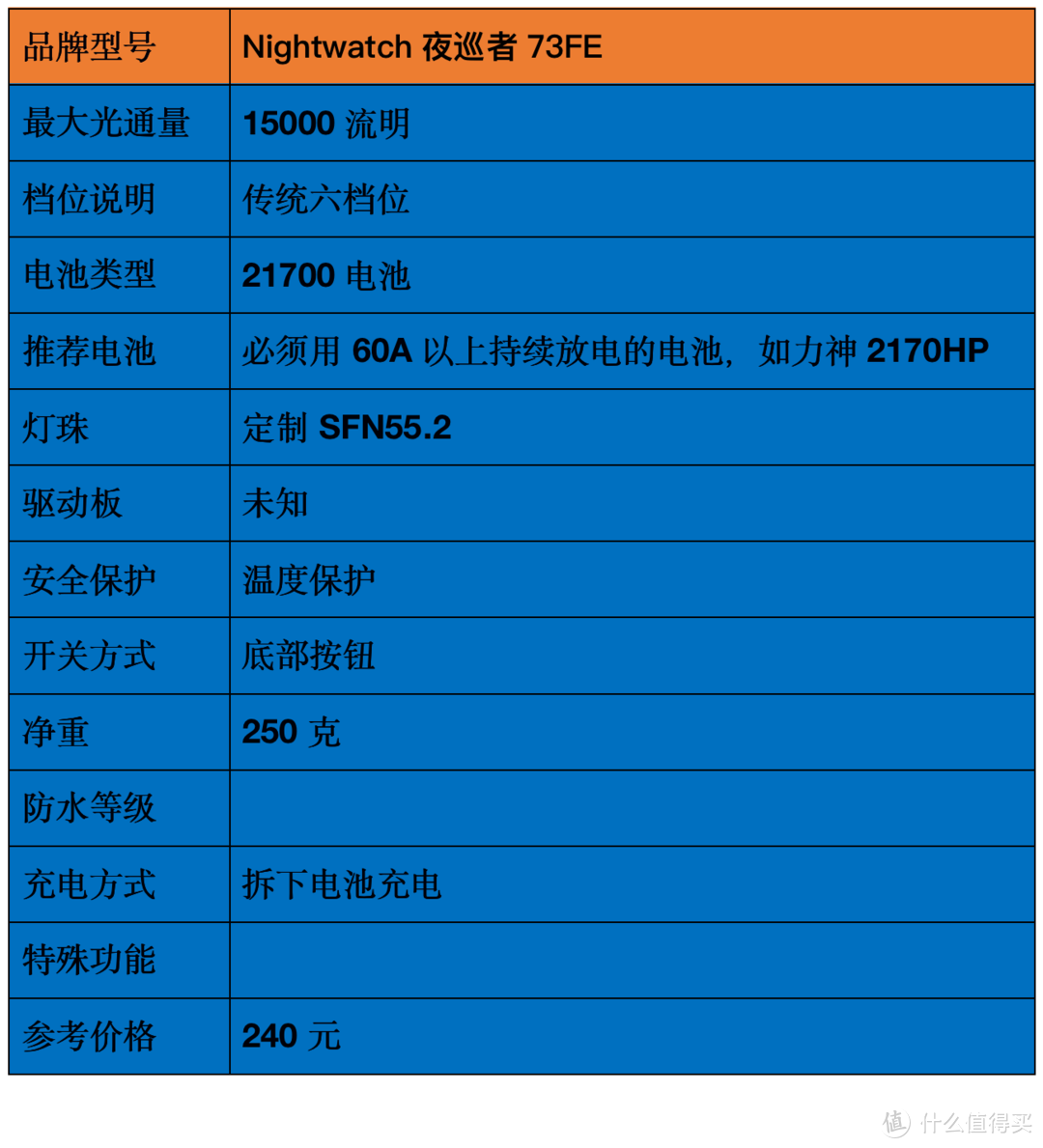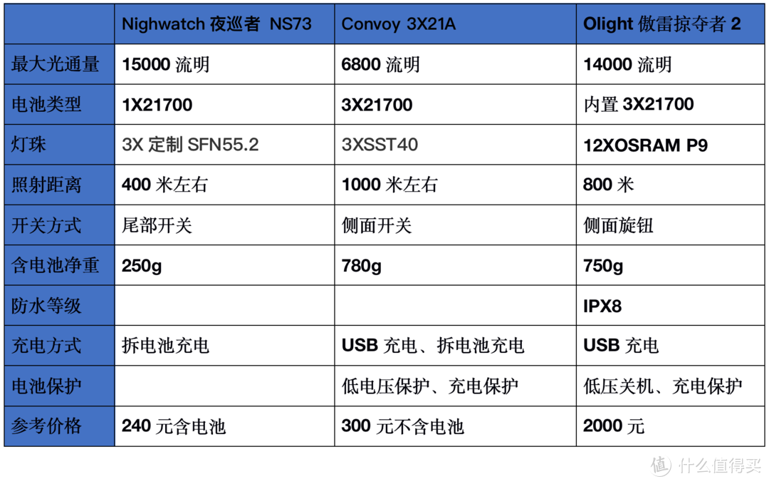 附以上3款高端6000流明以上手电的综合参数表,方便对比: