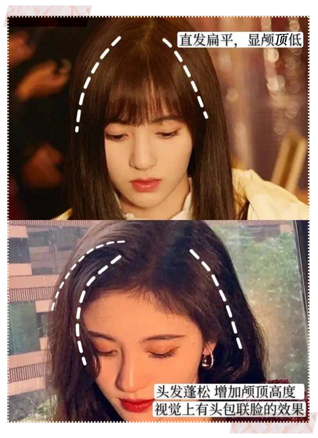 更重要的是无形中还显得颅定低、脸大,对比一下浓密发量和少发量,同一张脸完全两张视觉效果!