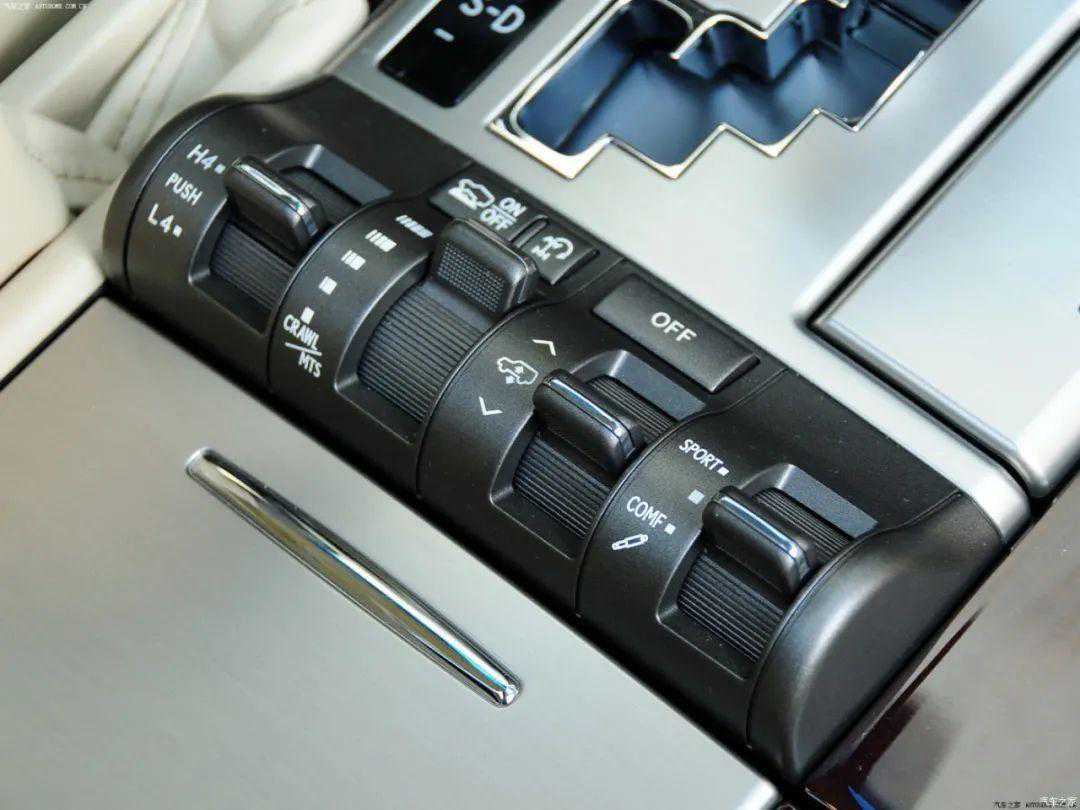 不得不提及它那看着让人眼花缭乱的越野性能控制系统。上下坡辅助功能、高低四驱切换、底盘升降、悬挂模式调节等功能,2012款LX570升级的地方则有:增加了越野转向辅助(俗称的坦克调头)、上下坡辅助功能从09款的3速可调升级为5速可调。
