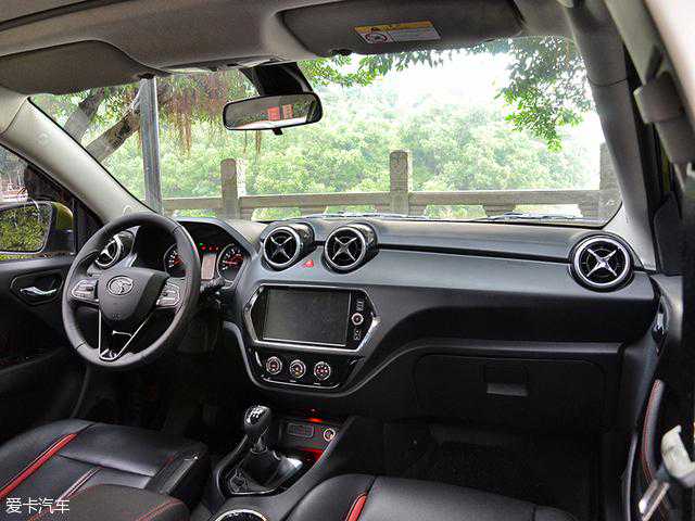 围绕年轻运动主题的内饰设计同样让人眼前一亮,炮筒式空调出风口显得个性前卫,而皮革与缝线工艺也是提高品质感的细节点缀。