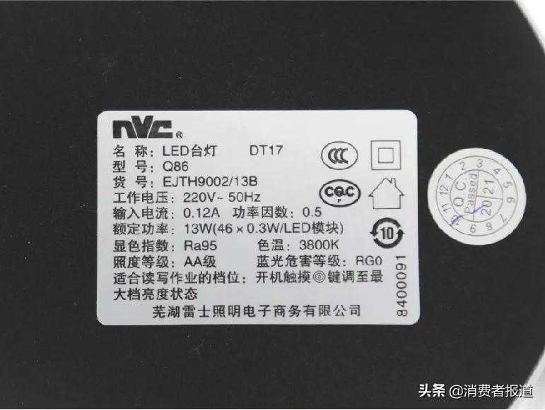 2021年3月,《消费者报道》送检了9款标称“AA级”的护眼台灯,对其照度、均匀度、显色指数、色温进行了检测。