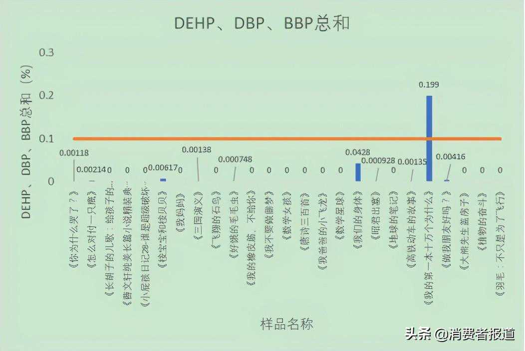 10款儿童读物检出含有邻苯二甲酸酯,其中1款儿童读物的邻苯二甲酸酯检出值超过标准要求的0.1%,不符合标准要求。